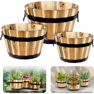 Yardwe Wooden Flower Bucket Rustic Flower Planters Wood Barrels Bucket Plant Pots Boxes Pails Container With Drainage Holes Handles For Patio Garden Backyard Amazon Co Uk Garden